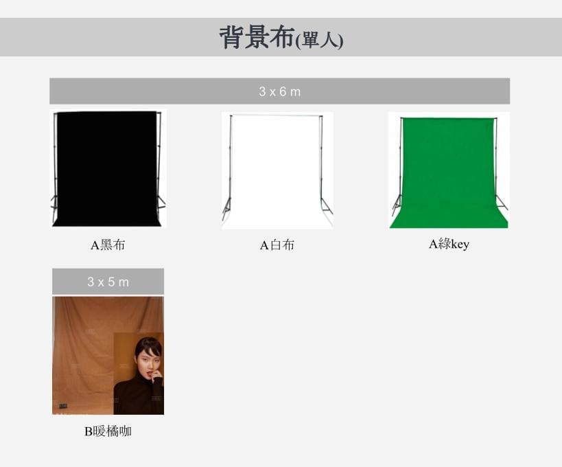 時段 實景+素棚(全區攝影棚) 白棚素棚(攝影棚)