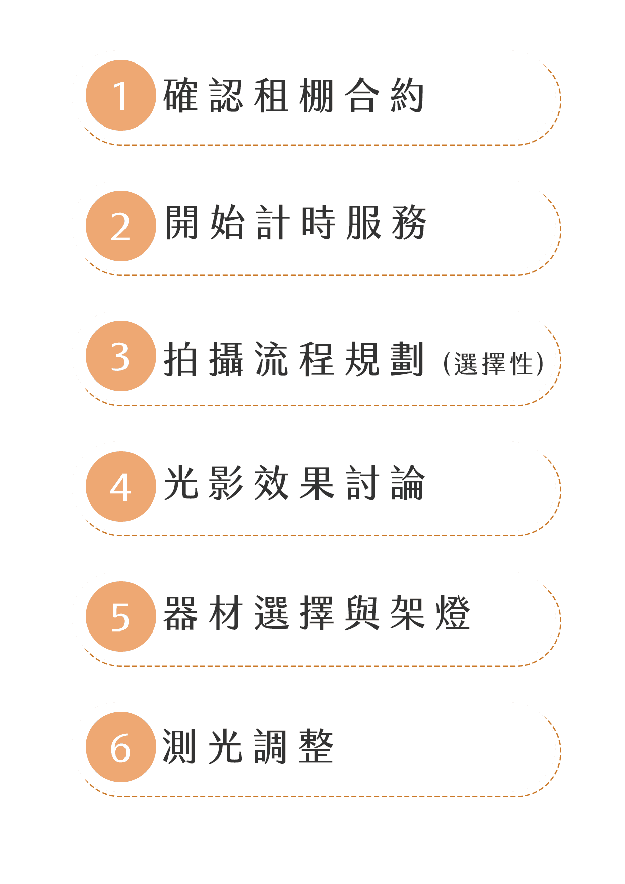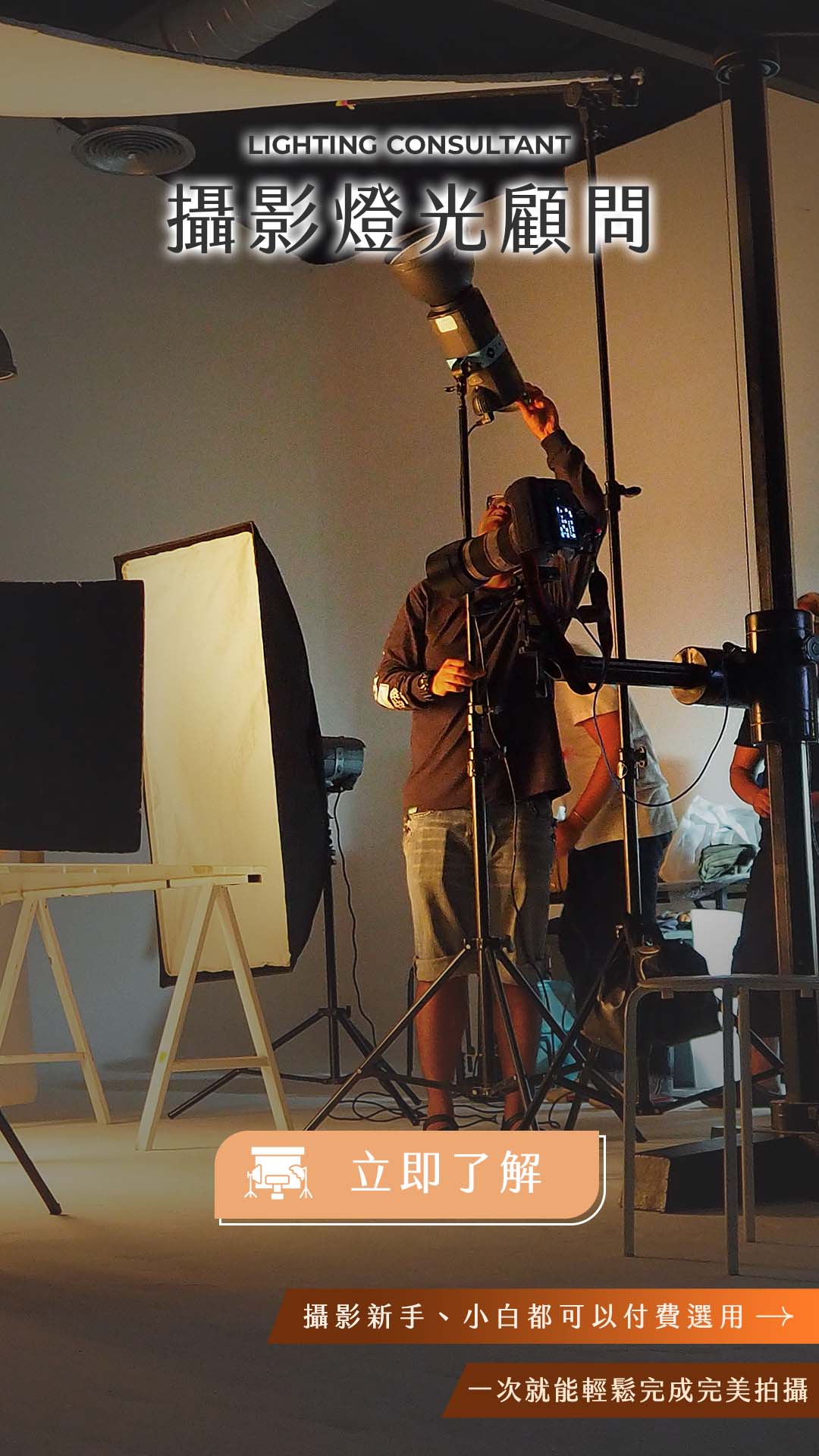 包含:燈光設定架設、姿態引導、拍攝流程協助